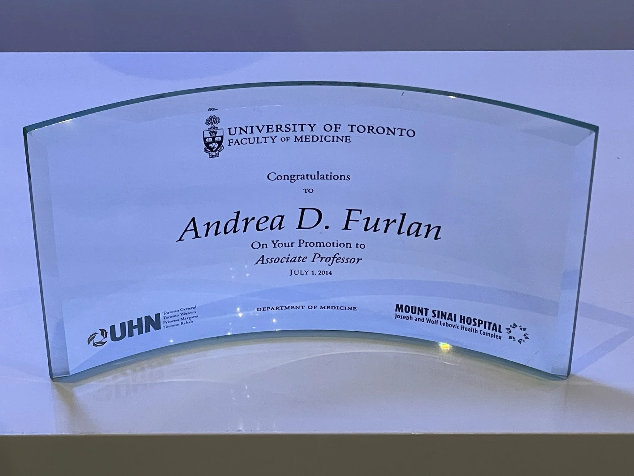 Promotion to Professor Award, Faculty of Medicine - University of Toronto. (Distinction)