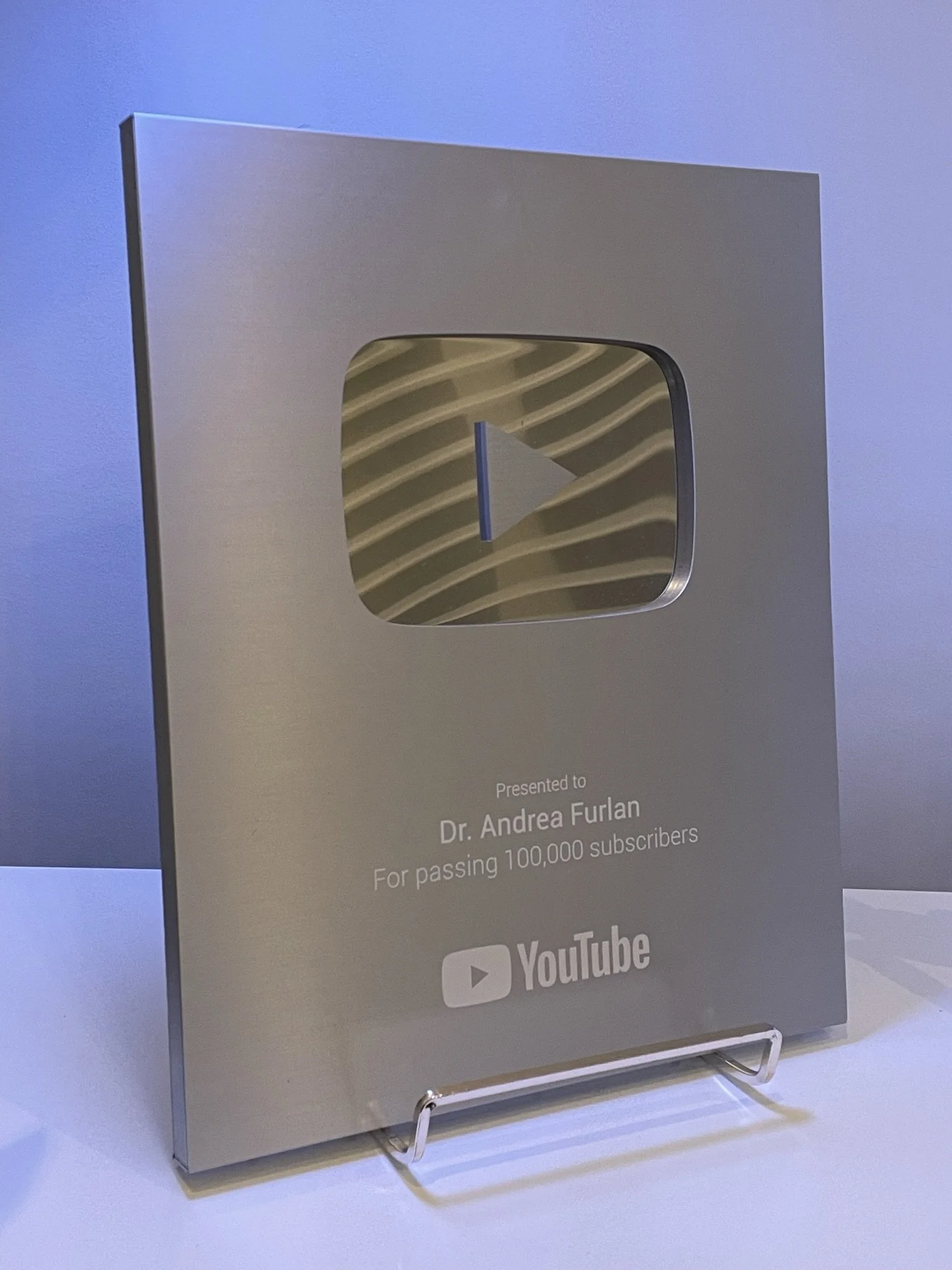 For passing 100,000 subscribers in the channel “Dr. Andrea Furlan”