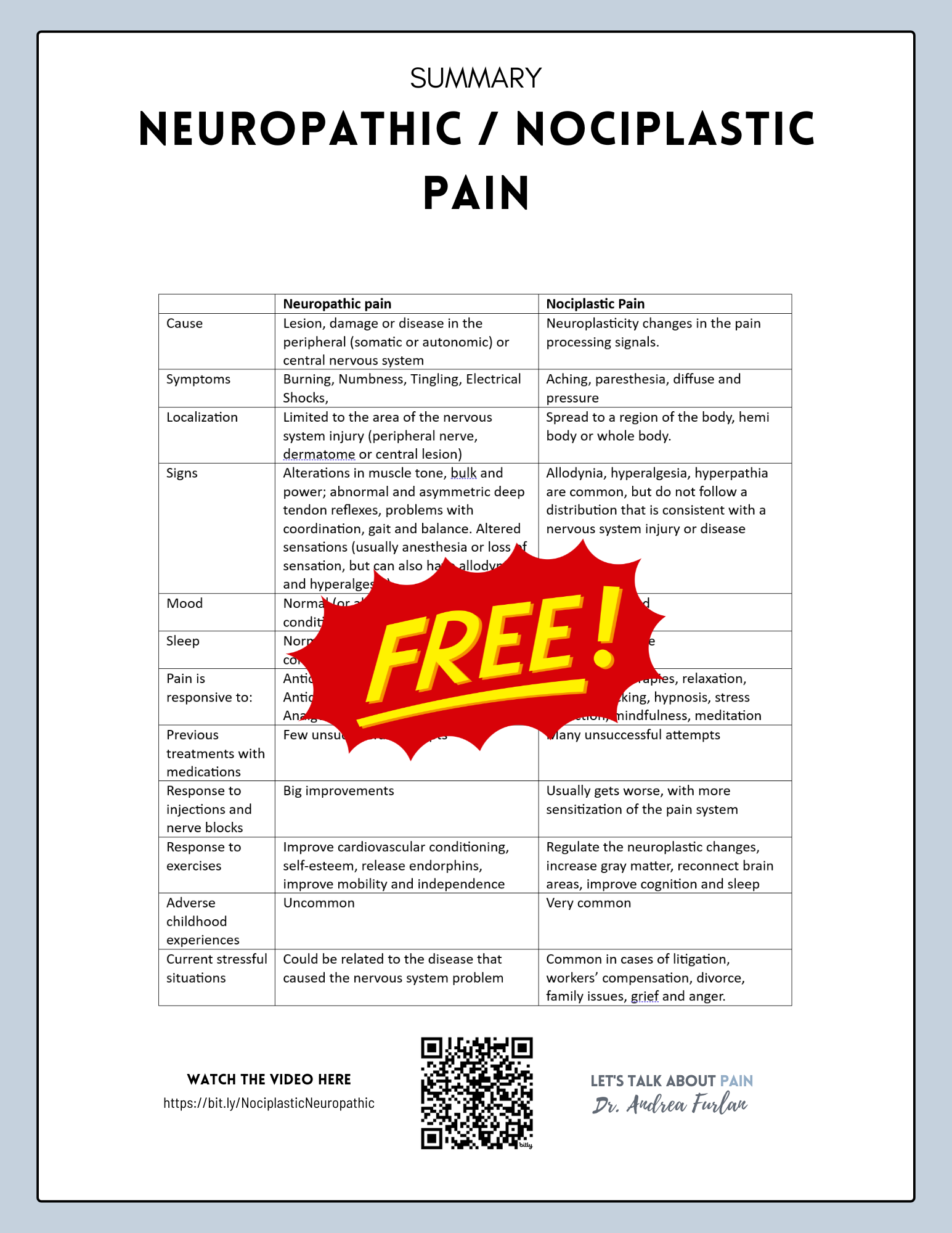 Please, fill this form below. Once you press “submit” you will be able to download the Summary of Differential Diagnosis of Neuropathic and Nociplastic Pain prepared by Dr. Andrea Furlan